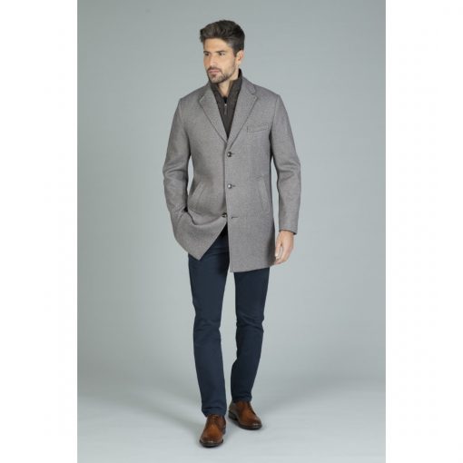 Abrigo de paño con pecherín desmontable. Tejido paño espiguilla. Disponible en marrón.
