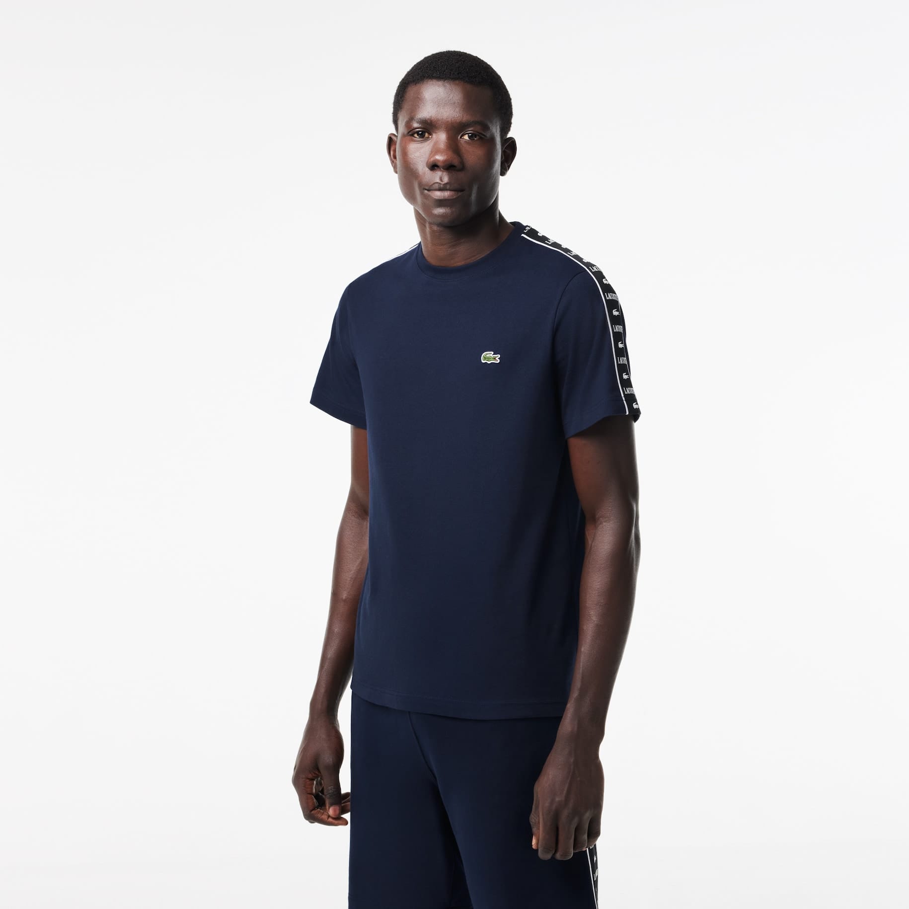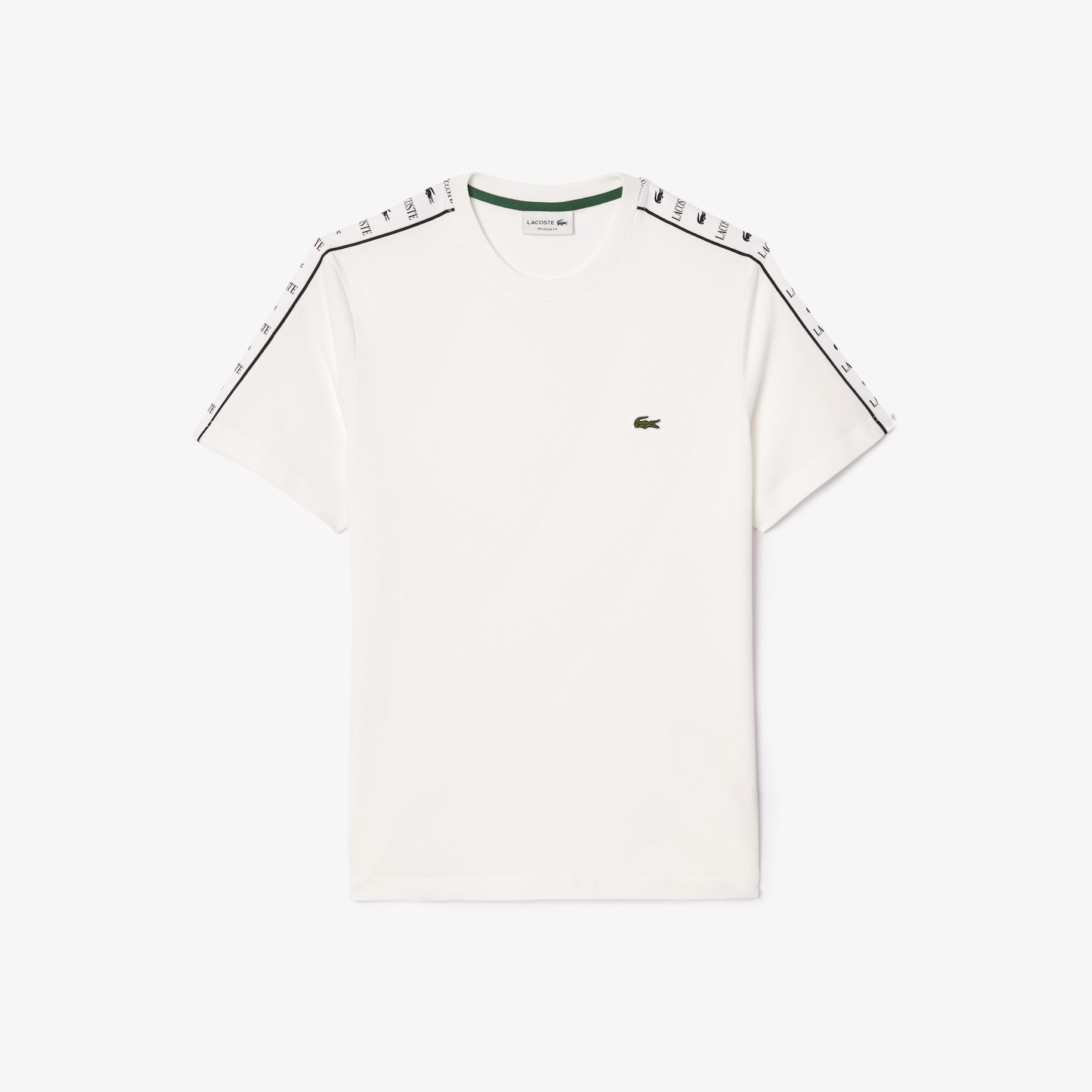 Camiseta regular fit en punto de algodón con rayas del logo a contraste en los hombros, cuello redondo y cocodrilo bordado en el pecho. Modelo muy deportivo y cómodo.