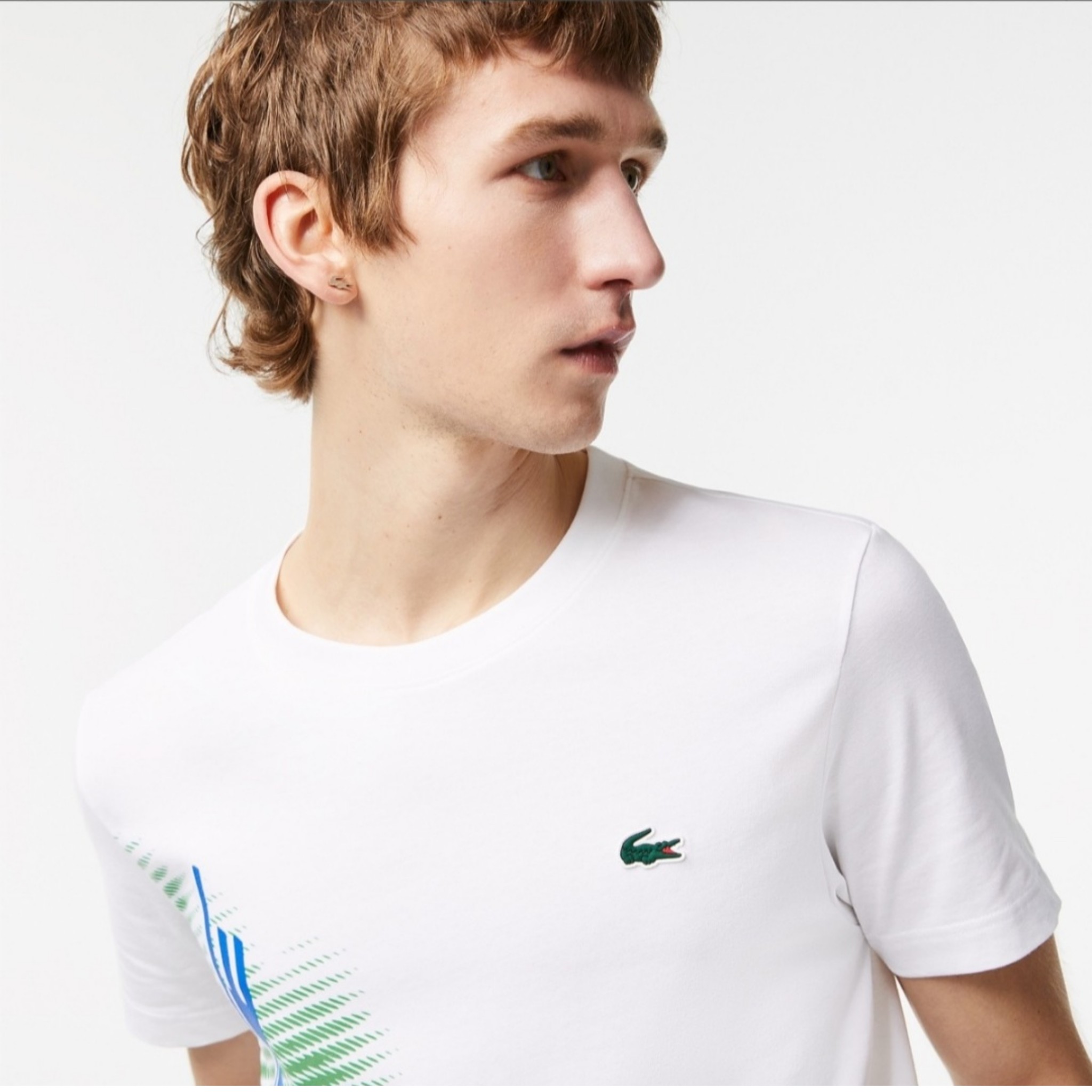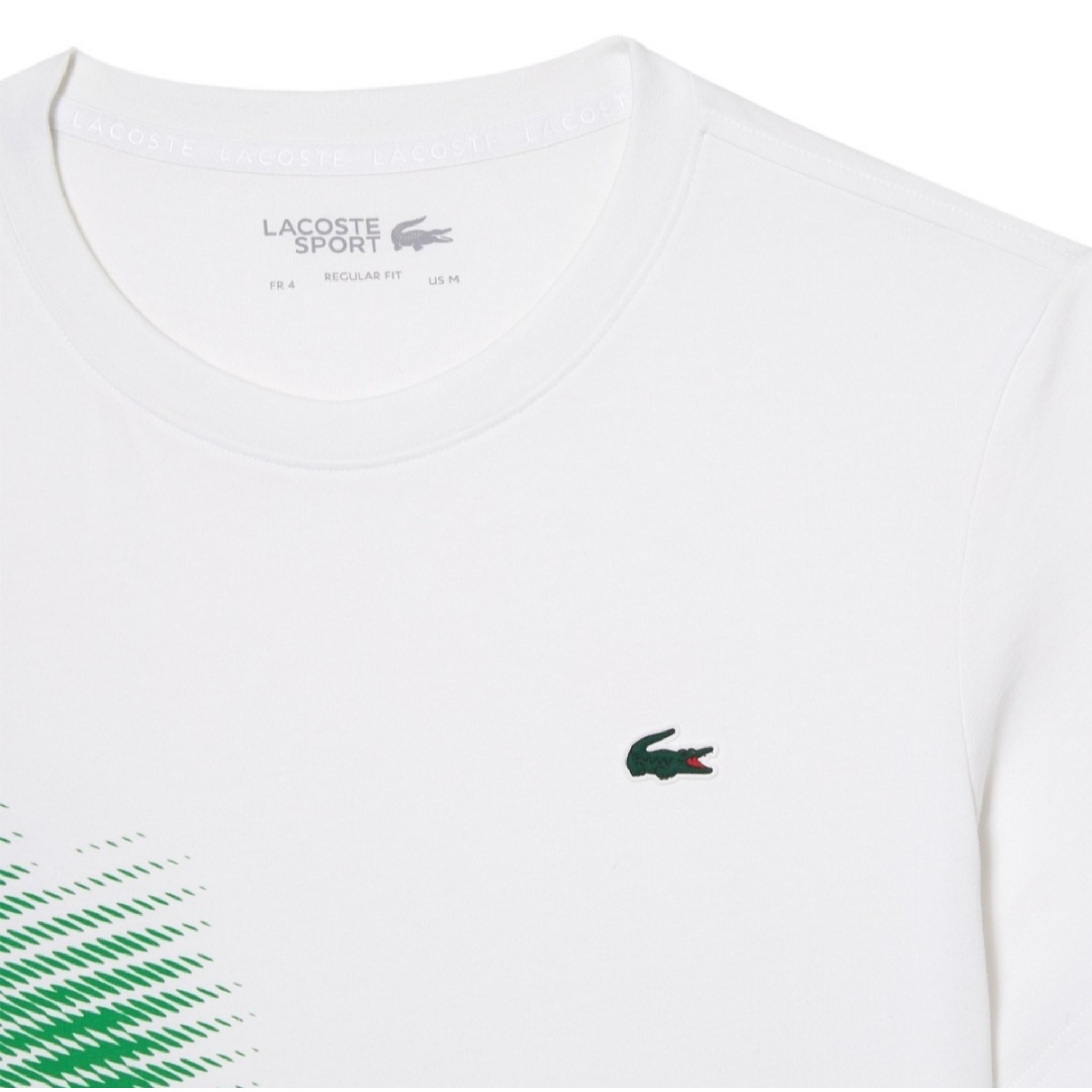 Camiseta lacoste sport con marca a contraste en verde. Tejido algodón ecológico con textura absorbente. Patrón Regular fit. corte impecable.