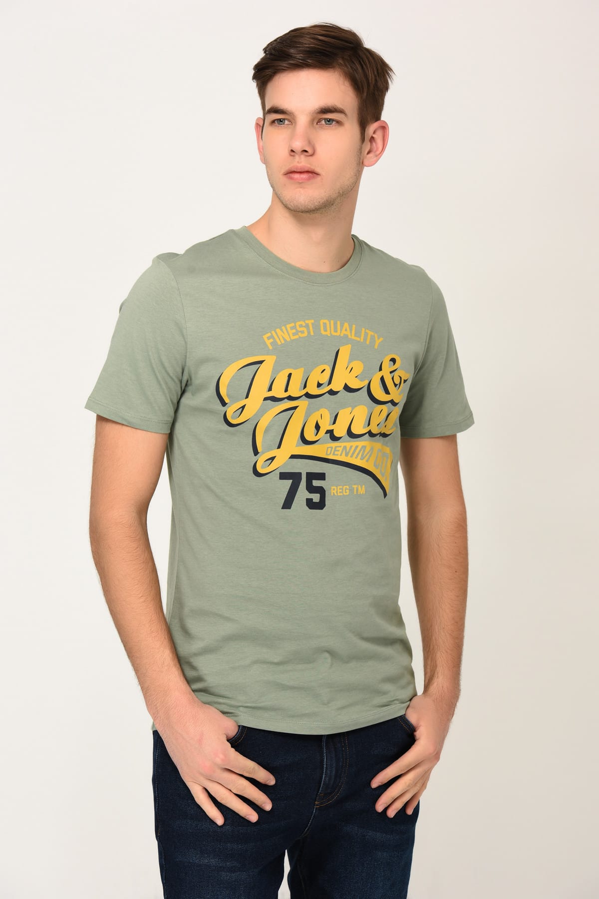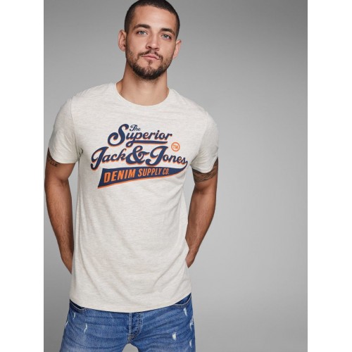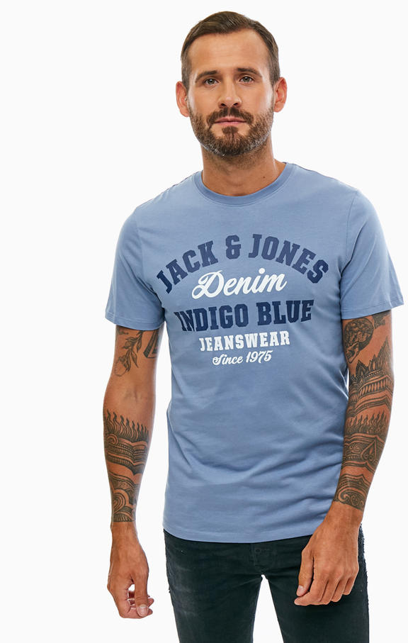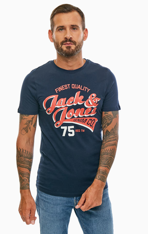 Camiseta de mangas cortas, 100% algodón, Con estampación y logo de Jack&Jones. Disponible desde las tallas S hasta la XXL, en distintos colores, azul, tostado, beig, y azul marino.