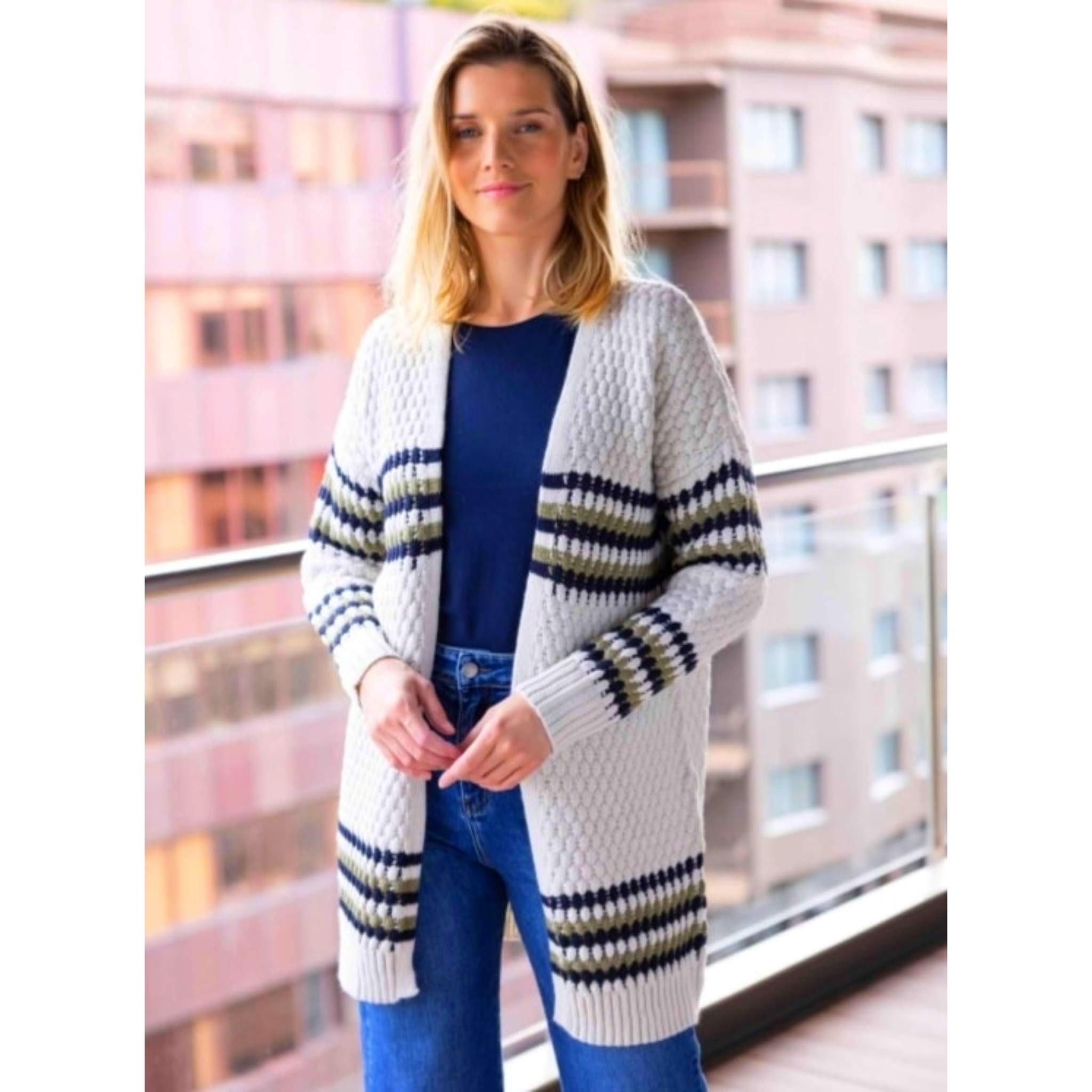 Cardigan de punto, de largo 3/4, con estampado de rayas. Se hace desde la talla s hasta la xxxl-