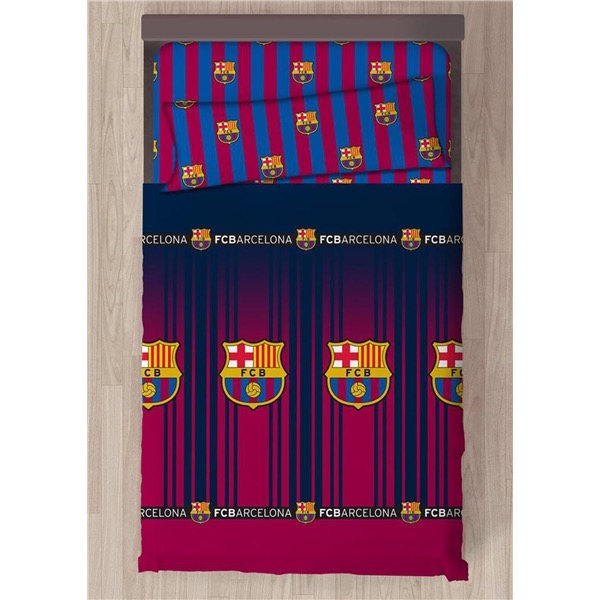 Juego de Sábanas del equipo de fútbol Club Barcelona, Composición 50% algodón, 50 % poliéster, medidas de cama 105.