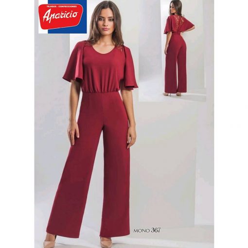 Mono con encaje en la parte superior de la espalda y mangas cortas de vuelo.