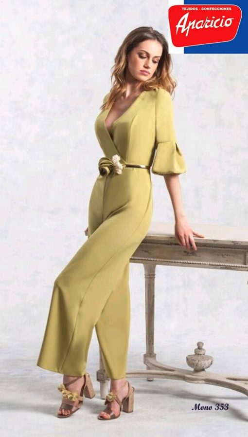 Mono con escote de pico cruzado.