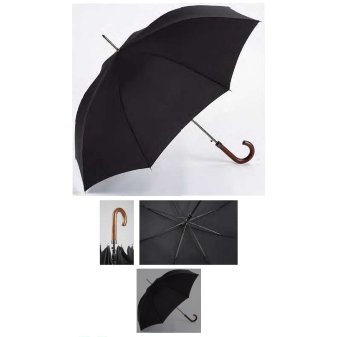 Paraguas largo de hombre, automático liso. Tiene 8 varillas . Antiviento. Apertura automática. Pesa 480 gramos. Medidas: 93 cm de largo x 65 cm de largo de varilla x 114 cm de diámetro. Fabricado en España. Color negro.