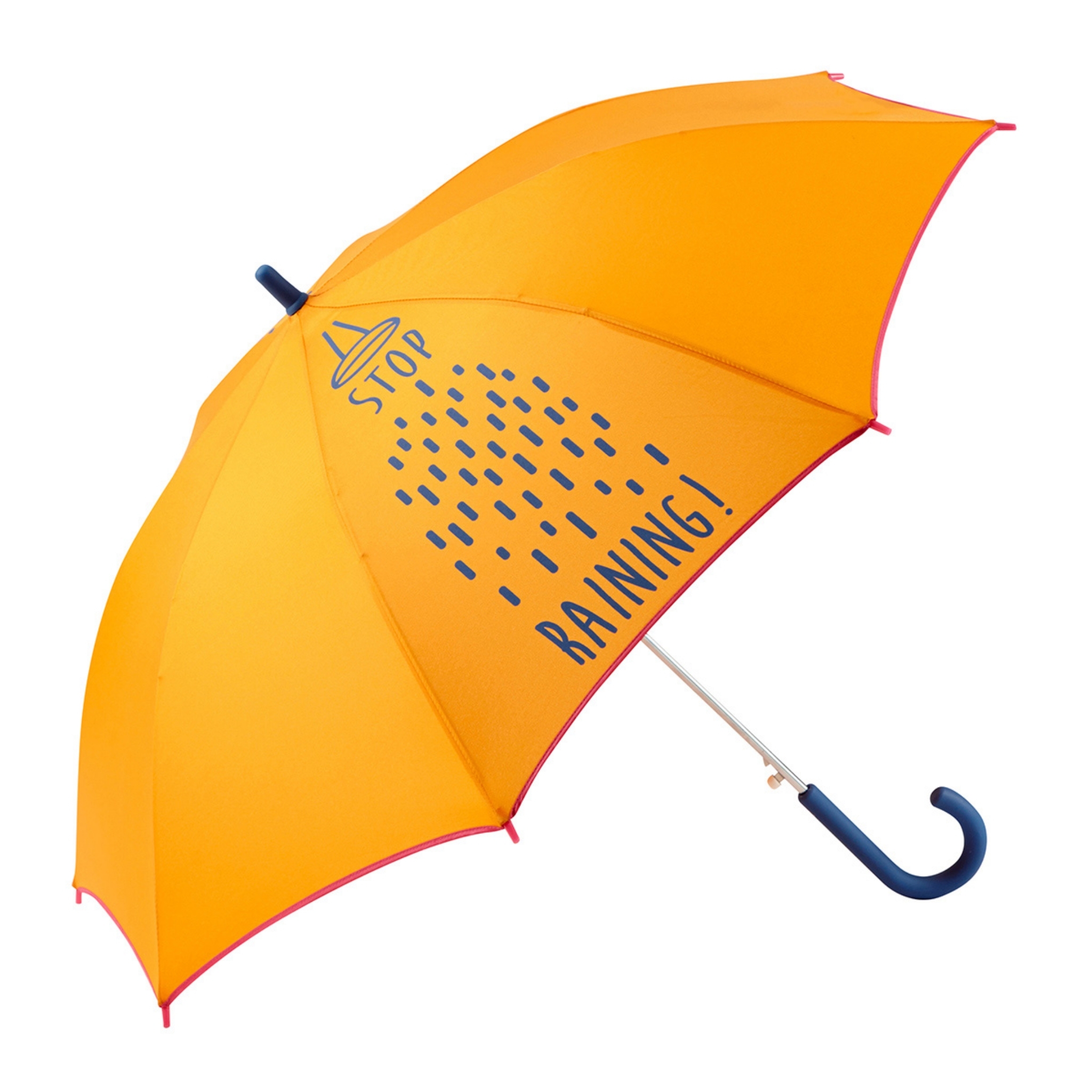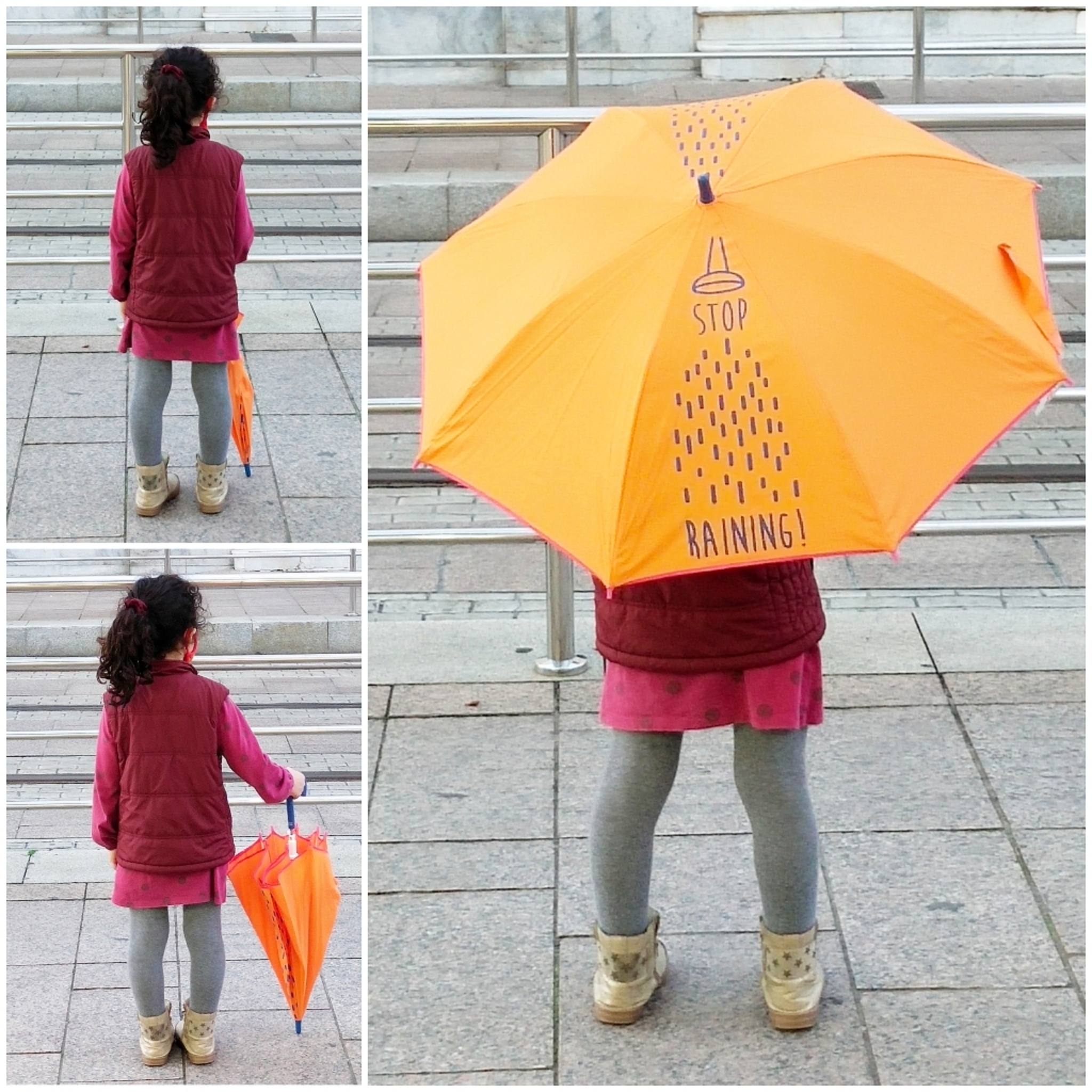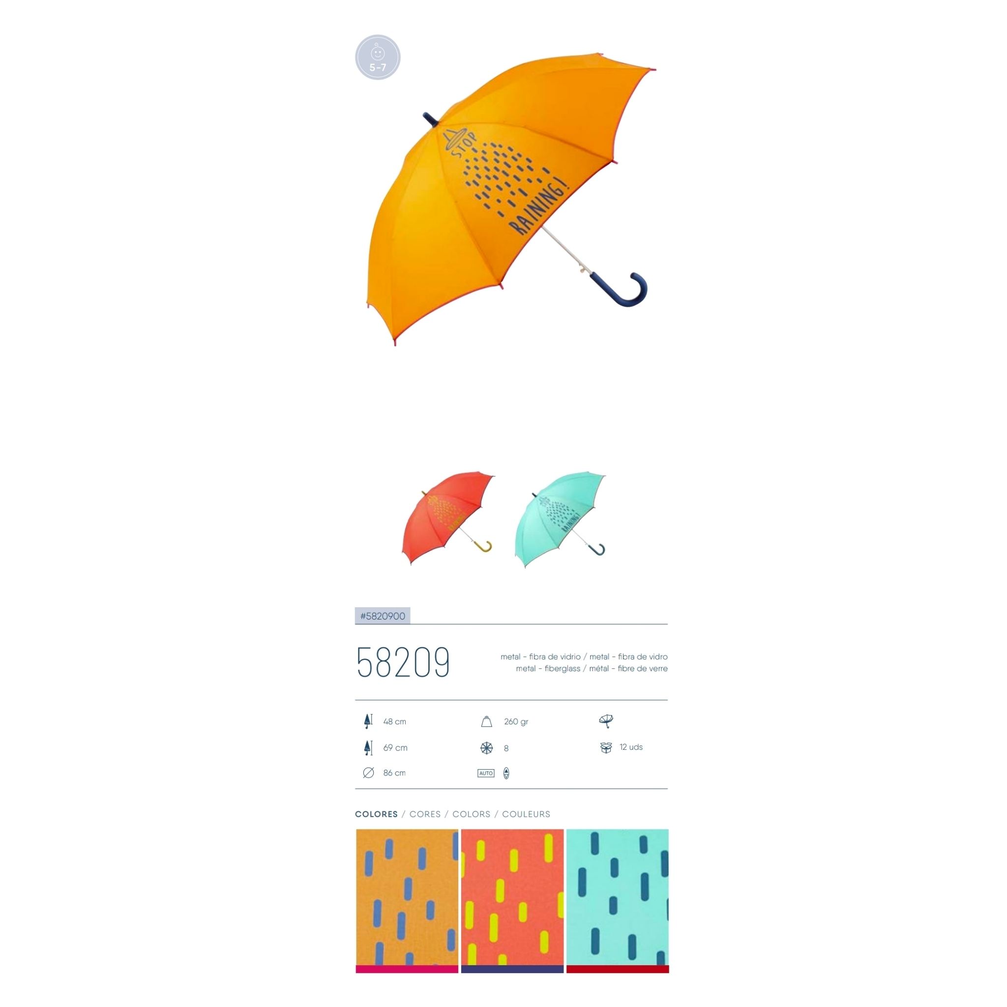 Paraguas infantil, de colores flúor, disponible en rojo, amarillo y celeste. (La niña de la imagen tiene seis años)