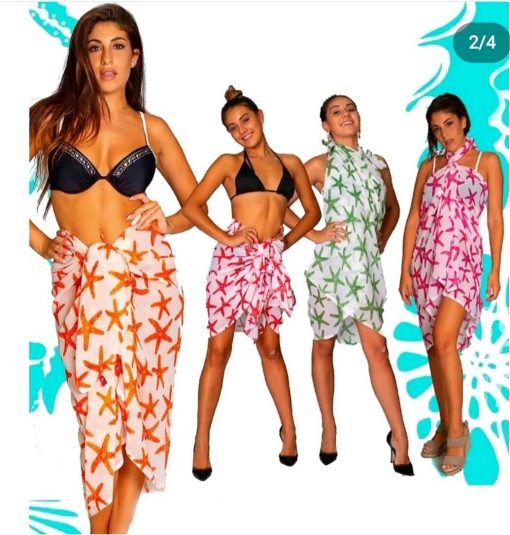 pareo con estampado de estrellas y flecos en el bajo, Disponible en varios colores.