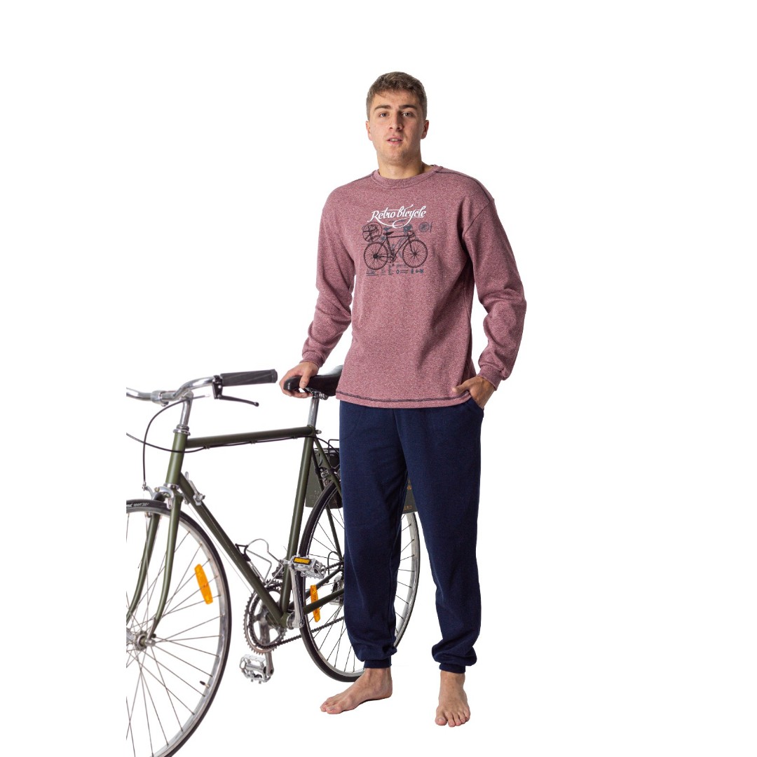 Pijama de hombre de invierno Retro bicycle. Fabricado en suave punto de algodón con suave afelpado interior. Cuello redondo y puño en muñecas y tobillos. Fabricado en España. Alta calidad