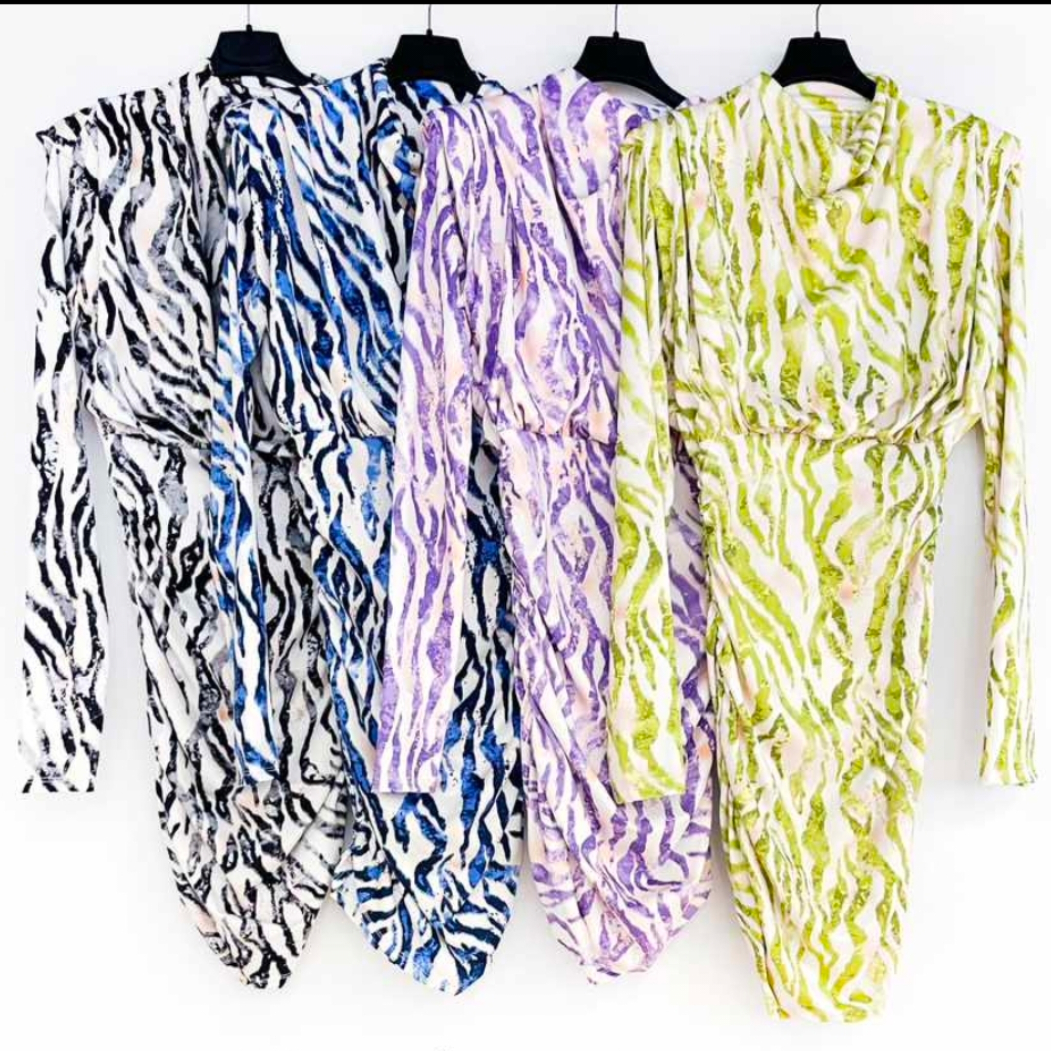 Vestido de mangas largas de licra, estampado. Disponible en varios colores, talla única.