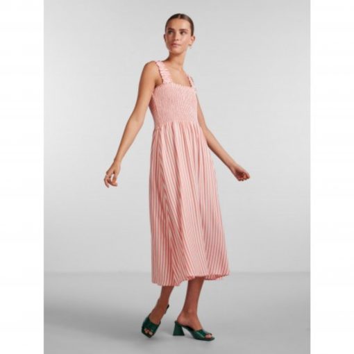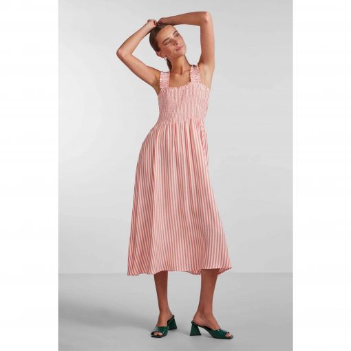 Vestido , estampado de rayas, tejido fino y fresco, con largo midi, de tirantes. Pecho y espalda de panel de abeja. Se hace desde la talla XS hasta la XXL